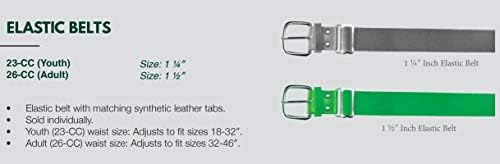 The Youth belt is 1.25 inches large and suits a waist measurement of 18-32 inches. The Grownup belt is 1.5 inches large and suits a waist measurement of 32-46 inches. Comes with matching artificial leather-based tabs