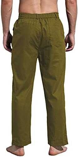 AITFINEISM Males’s Drawstring Informal Straight Match Linen Pants with Again Elastic Waistband