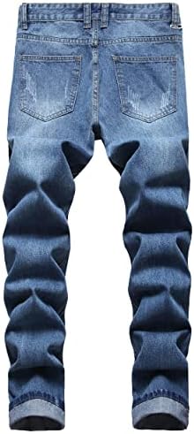 AMABCDET Males’s Ripped Denims Slim Match Stretch Relaxed Common Match Denims for Males Distressed Denim Pants