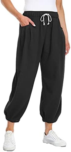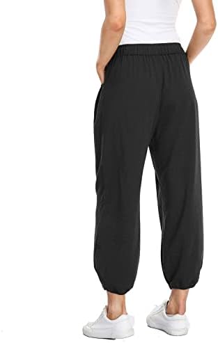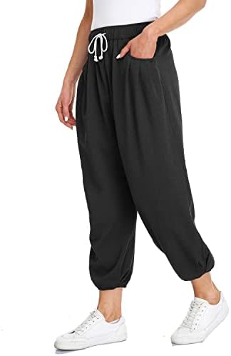 andy & natalie Ladies’s Informal Linen Joggers Pants Cropped Drawstring Excessive Waist Pleated Facet Pockets Sweatpants