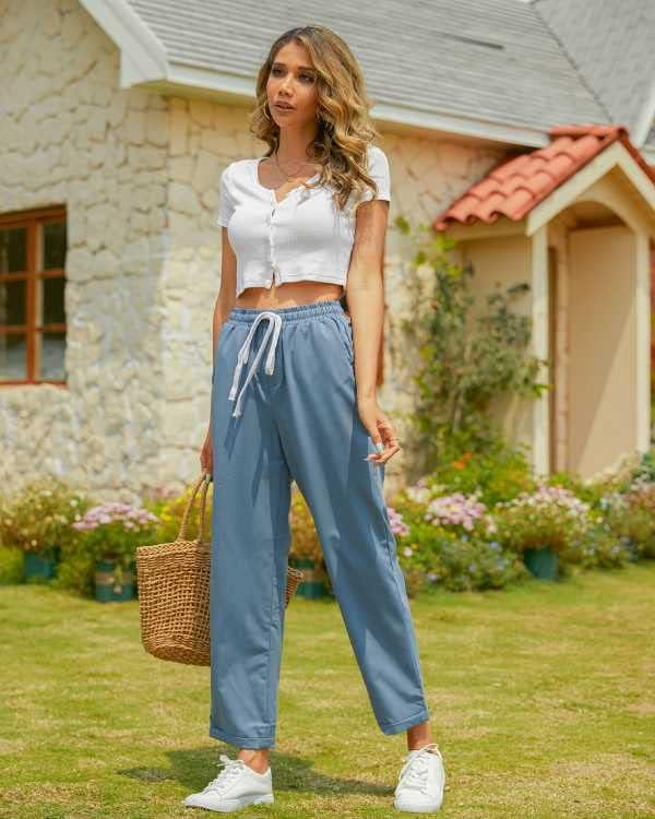 Matching:This pants is ideal for summer season,you’ll be able to match with tees,blouses,shirts,tank tops,sweaters and so forth.