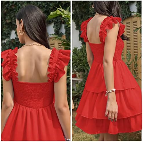 Byinns Womens Sq. Neck Sleeveless Ruffle Costume Excessive Waist Backless Tiered Smocked Strappy Informal Quick Mini Clothes