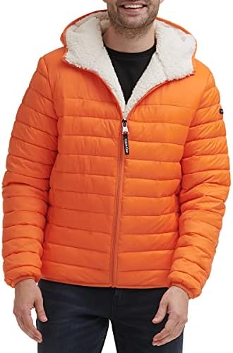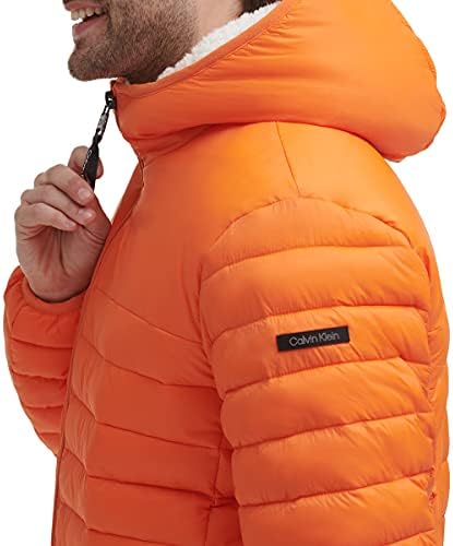 Calvin Klein mens Light-weight Packable Down Jacket With Fleece Bib and Detachable Hood