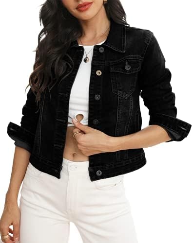 Cantonwalker Denim Jean Jacket Girls’s Classic Washed Lengthy Sleeve Traditional Jean Jacket D20……