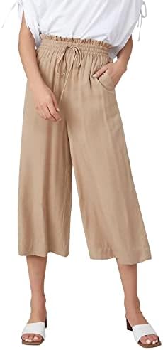 Capri Pants for Ladies Summer time Informal Broad Leg Pants Drawstring Pants with Pockets Free Match Plain