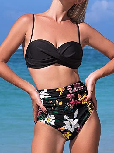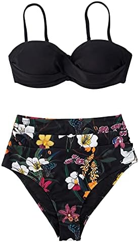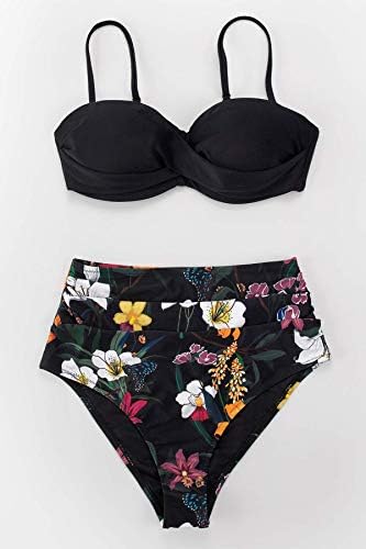 CUPSHE Girls’s Excessive Waist Bikini Swimsuit Twist Floral Print Two Piece Bathing Go well with