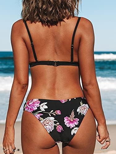 Design: Keep Fashionable in Our Black Triangle Floral Bikini Set, Matching Backside Piece Options A Low Waisted Cheeky Match