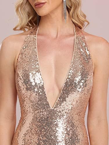 Ever-Fairly Ladies’s Deep V-Neck Halter Backless Maxi Sequin Mermaid Wedding ceremony Visitor Attire 50164