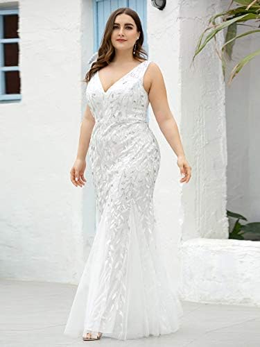 Ever-Fairly Girls’s Double V-Neck Sleeveless Mermaid Gown Plus Dimension Night Promenade Gown 7886-PZ