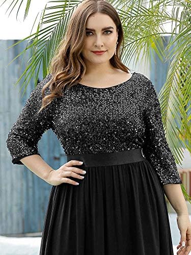 Ever-Fairly Ladies’s Spherical Neck Sequin Maxi Costume Lengthy Plus Dimension Night Costume 0683-PZ