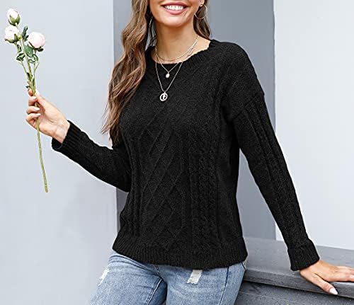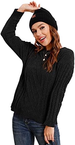Feiersi Ladies’s Pullover Sweater Informal Crewneck Lengthy Sleeve Cable Knit Chunky Jumper Tops
