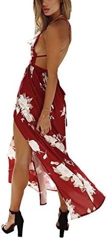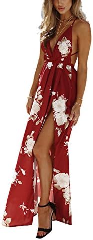 FFLMYUHUL I U Girls’s Strap Floral Print Lace Up Backless Deep V Neck Horny Cut up Seaside Maxi Costume