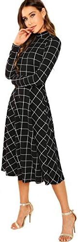 Floerns Ladies’s Excessive Neck Plaid Match and Flare Midi Costume