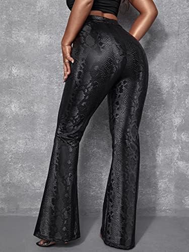 Floerns Girls’s Excessive Waist Snakeskin Print PU Leather-based Flare Leg Lengthy Pants