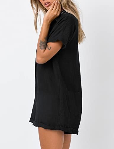 Flygo Ladies’s Summer time Informal Button Up Brief Sleeve Attractive V Neck Rompers
