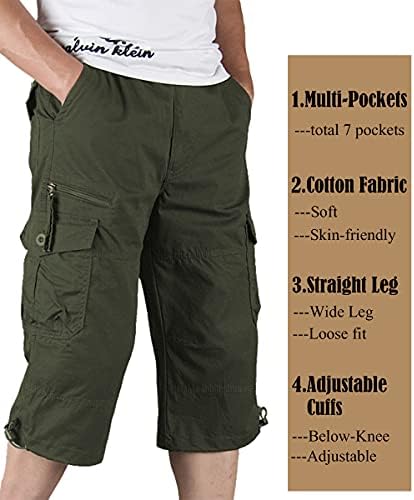 FOREVJHMM Males’s Informal Cargo Shorts 3/4 Twill Cotton Light-weight Knee Size Free Match Cargo Capris Lengthy Shorts with Pockets