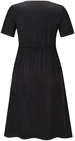 FUQILA Summer time Gown For Girls Elegant Denim Gown Informal Gown V-Neck Knee lengthy