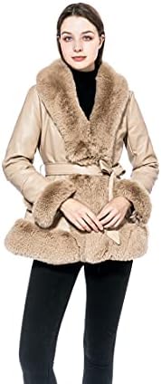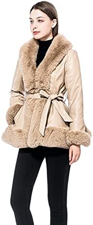 GRAN ORIENTE Ladies’s Fake Leather-based Jacket with Fake Fur Collar Lengthy Sleeve Parka with Pockets Heat Winter Coat with Belt