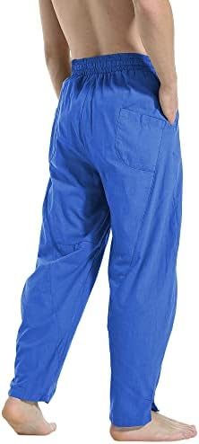 GUDEUBAI Mens Cotton Linen Drawstring Pants Elastic Waist Informal Summer time Seashore Pants