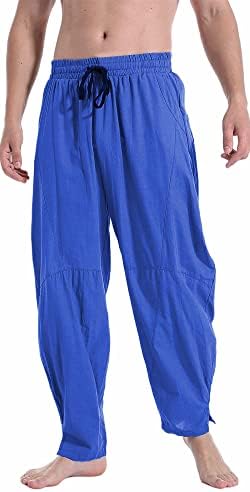 GUDEUBAI Mens Cotton Linen Drawstring Pants Elastic Waist Informal Summer time Seashore Pants