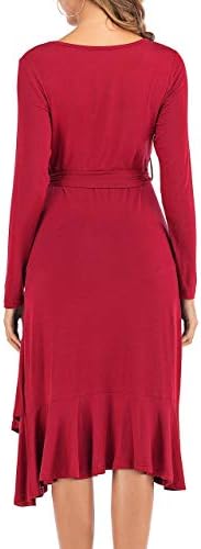 GUTGS Ladies’s Plain Informal Flowy Lengthy Sleeve Midi Gown with Belt