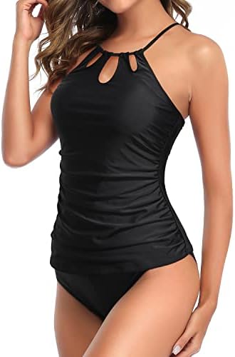 Excessive neck tankini prime: This halter tankini prime design with keyhole makes you look cute and stylish. The 2 piece swimsuit options with detachable padded push up bra for help and form, adjustable shoulder straps for a flattering match.