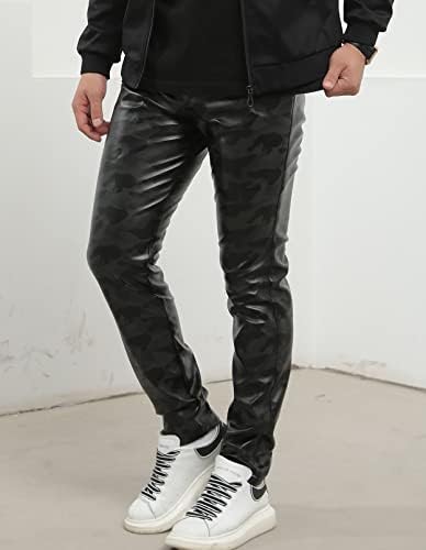 Idopy Males`s Enterprise Slim Match 5 Pockets Fake Leather-based Pants Denims