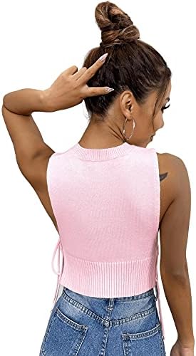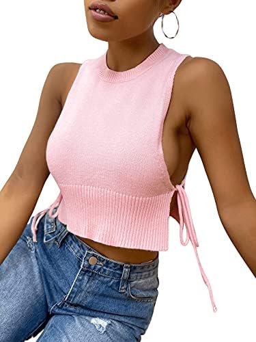 Milumia Ladies’s Informal Sleeveless Slit Tie Facet Sweater Vest Spherical Neck Crop Tank Prime