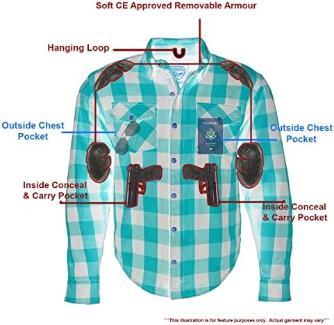 Milwaukee Leather-based MPM1631 Males’s Armored Checkered Flannel Biker Shirt with Aramid by DuPont Fibers