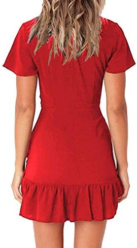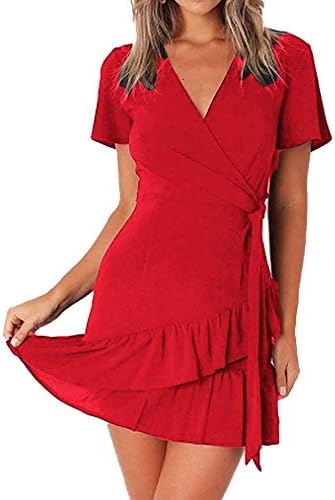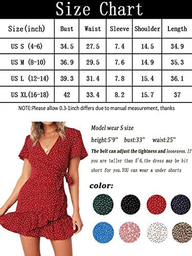 Naggoo Girls’s Summer time Wrap V Neck Polka Dot Print Ruffle Brief Sleeve Mini Floral Gown with Belt