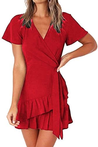 Naggoo Girls’s Summer time Wrap V Neck Polka Dot Print Ruffle Brief Sleeve Mini Floral Gown with Belt