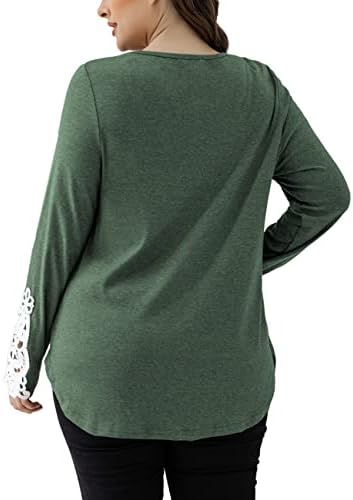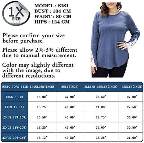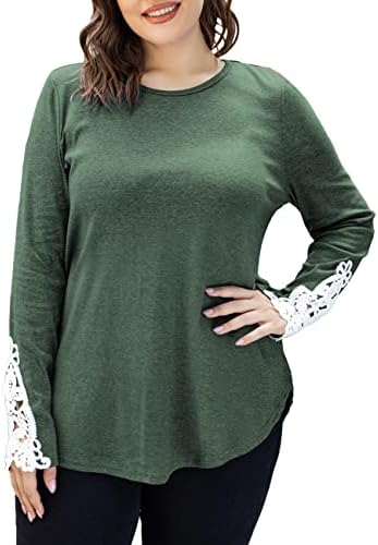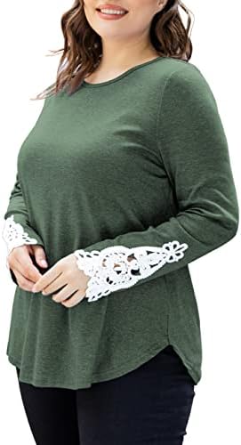 Othyroce Womens Plus Measurement Tops Lace Lengthy Sleeve Informal Tunic Shirts Spherical Neck Blouses M-3X