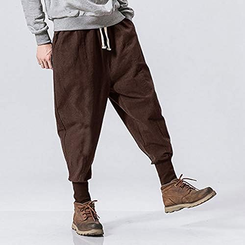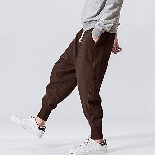 Pengfei Mens Cotton Linen Dishevelled Joggers Pants Elastic Waist Light-weight Sweatpants Summer season Pants