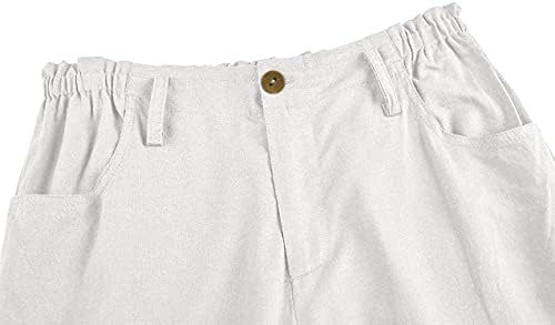Pretifeel Womens Summer time Cotton Linen Pants Informal Elastic Waist Flat Entrance Seashore Free Match Capri Pants