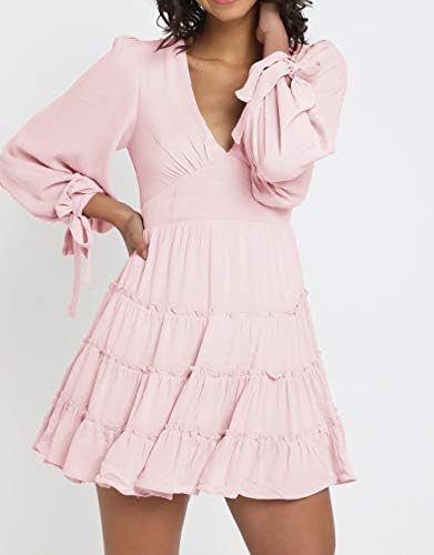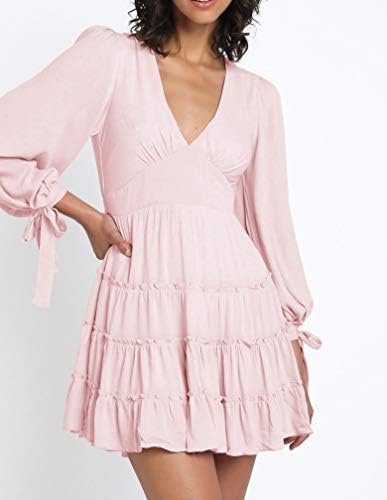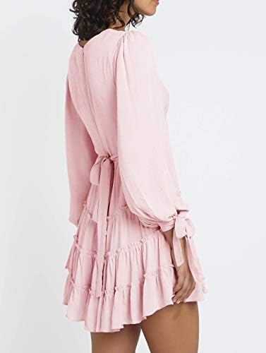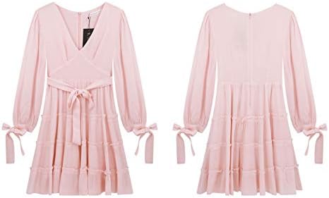 R.Vivimos Girls’s Cotton Fall Lengthy Sleeves V Neck Tie Waist Informal Layered Ruffles Mini Swing Attire