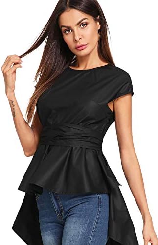 Romwe Girls’s Asymmetrical Excessive Low Ruffle Shirt Self Tie Cut up Again Get together Tops