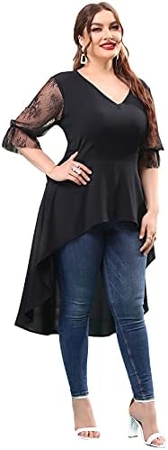 Romwe Girls’s Plus Measurement Lace Brief Sleeve V Neck Ruffle Excessive Low Social gathering Tops Blouses