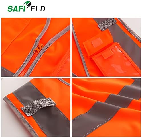 Security Reflective Work Vest 6 Pack for Males and Girls with 8 Pockets and Zipper Excessive Visibility Development Outerwear