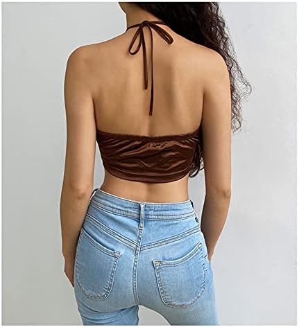 Horny Crop Prime for Ladies Summer season Sleeveless Deep V Neck Stylish Halter Cropped Tank Tops