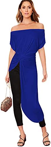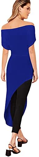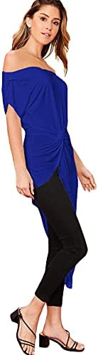 SheIn Ladies’s Elegant Asymmetrical Twist Entrance Off Shoulder High Plain Excessive Low Shirt
