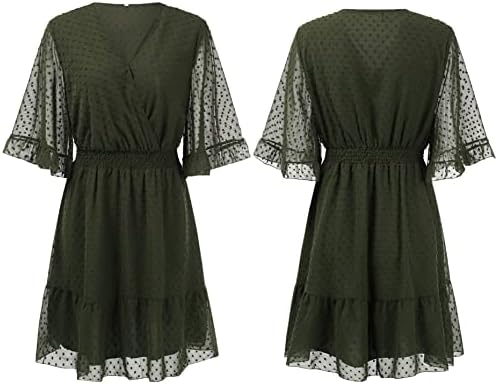 Spring Clothes for Ladies 2022 V Neck Half Sleeve Summer time Flowy Mini Costume Swiss Dots Ruffle Solar Clothes Chiffon Tunic Costume