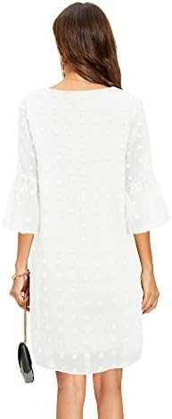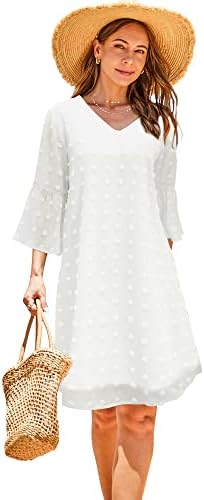 STYLEWORD Womens Swiss Dot Chiffon Quick Sleeve V Neck Summer season Mini Gown Ruffle Flowy Shift Informal Sundress Babydoll