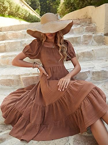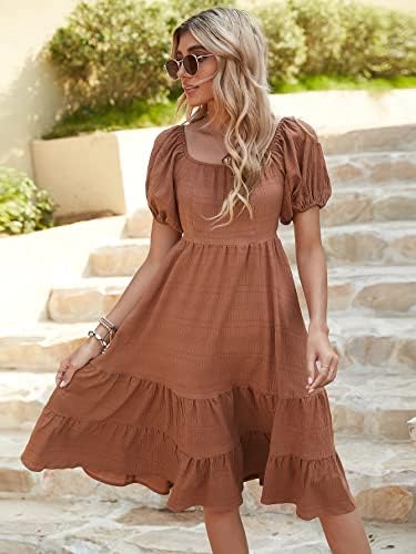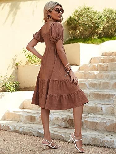SweatyRocks Girls’s Puff Sleeve Ruffle Hem Midi Costume Scoop Neck A Line Clothes Excessive Waist Brief Costume for Summer season