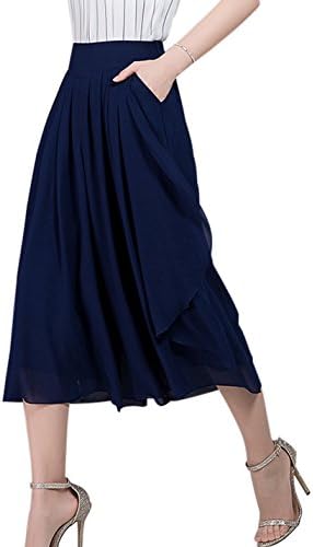 Tanming Ladies’s Excessive Elastic Waist Pleated Chiffon Large Leg Capri Pants Culottes