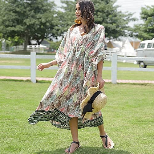 Kaftan Summer time Seaside Coverups lengthy Costume with Bohemian Print