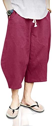TOTNMC Males’s Saggy Linen Capri Pants Informal Yoga Patchowork Seaside Pants with Drawstring