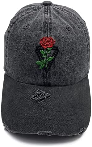 Unisex Baseball Cap Dad Hat Classic Washed Distressed Cotton Adjustable Rose Embroidered Hat