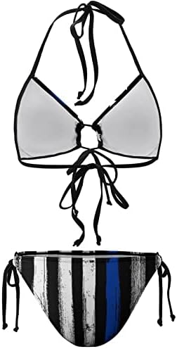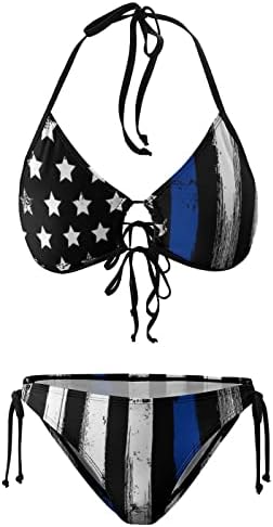 Ladies American Flag Two Piece Swimsuit Attractive Swimwear Halter String Police Blue Line American Flag Triangle Bikini Units