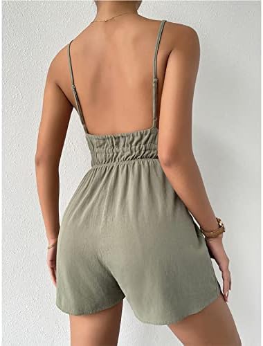 Options: Excessive waist romper for ladies, spaghetti strap, deep v neck, backless, elastic and drawstring waist design, stable shade, road put on, informal summer season outfit.