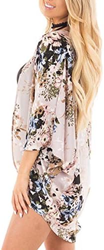 Ladies’s 3/4 Sleeve Floral Print Kimono Sheer Chiffon Unfastened Cardigan S-3XXL